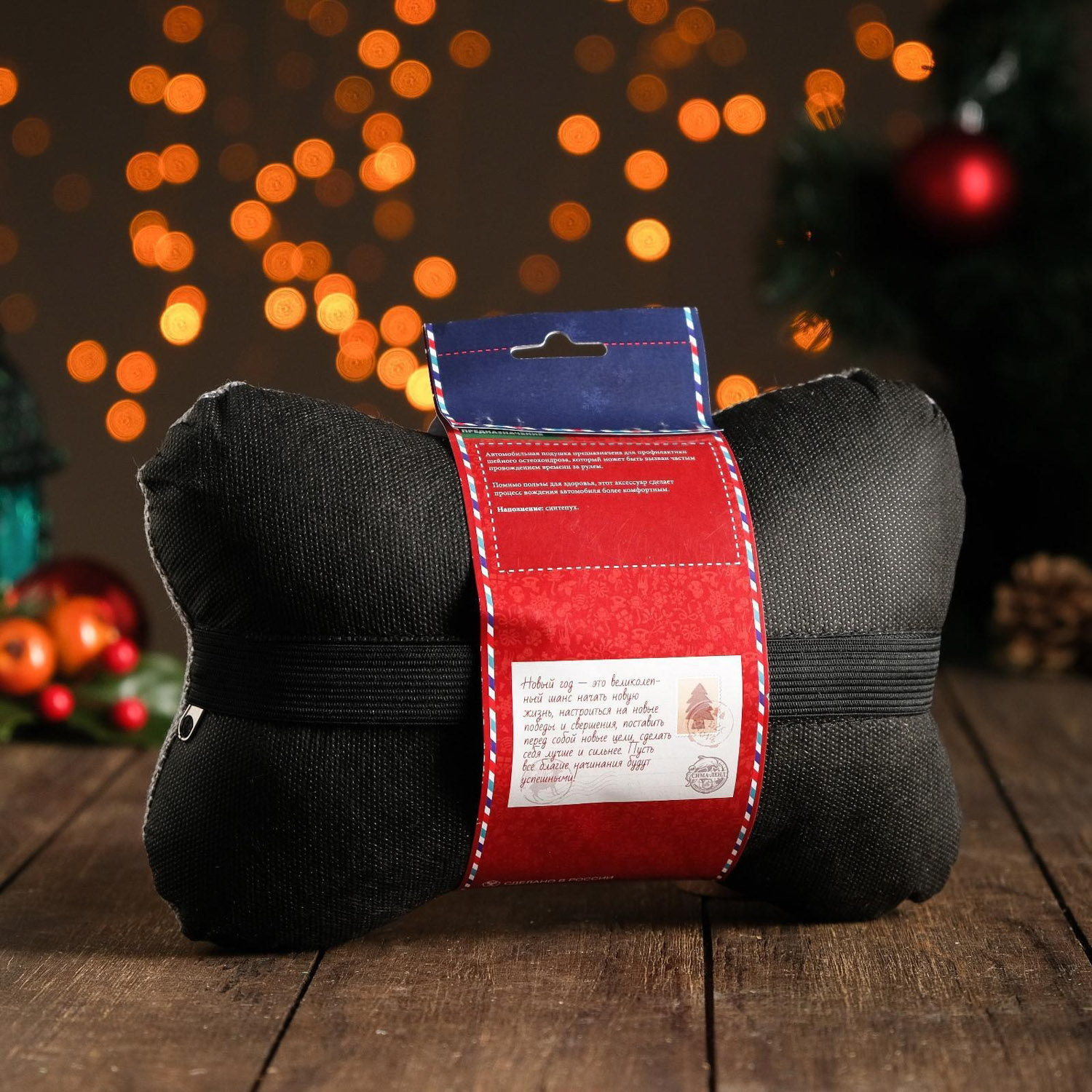 Подушка автомобильная подарочная "Новый год", на подголовник, лен, серый, 18х26 см 5458982