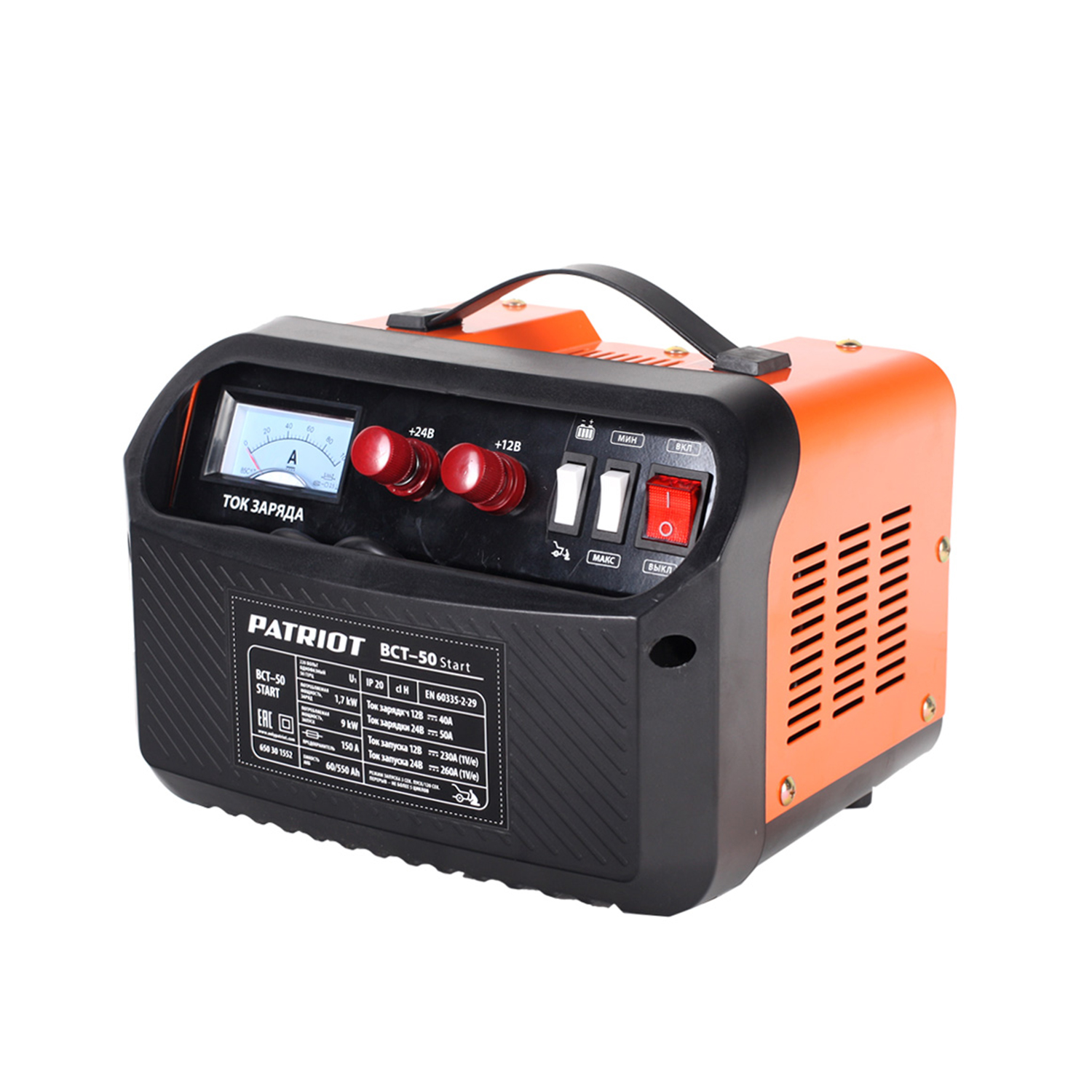 Устройство пускозарядное для автомобильного аккумулятора 12В/24В 50А ВСТ-50 Start PATRIOT *1
