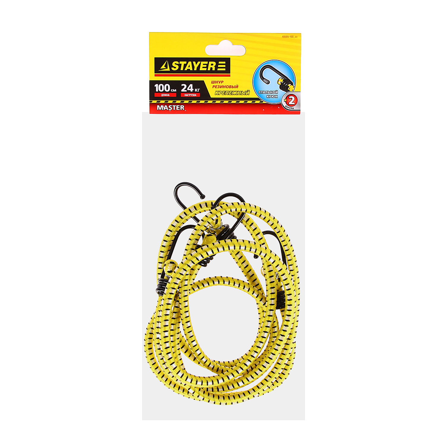 Шнур крепежный резиновый 100 см,d7мм, 2 шт, крюки стальные Мастер (арт.40505-100_z01) Stayer *1/6/48