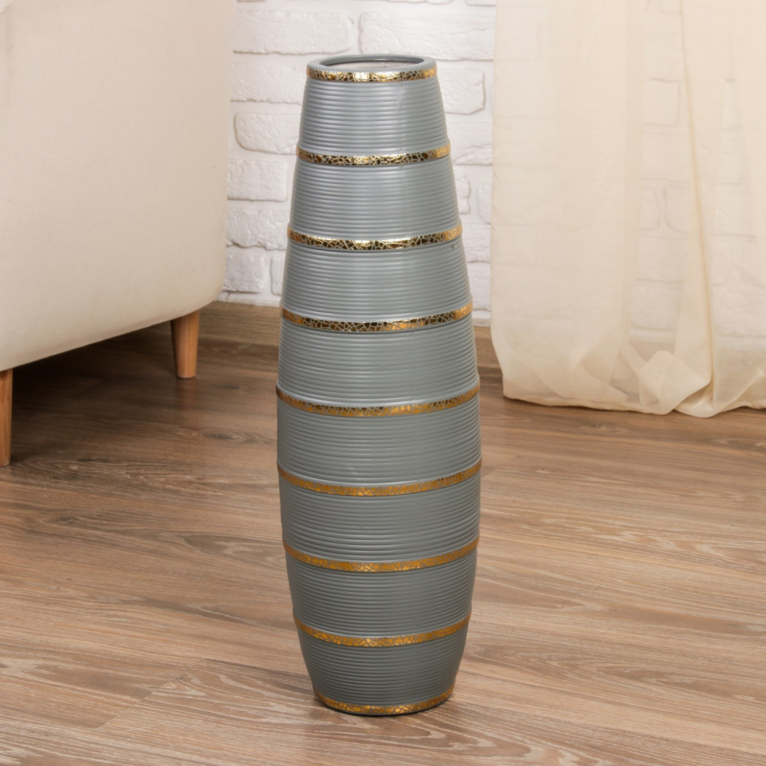 Ваза керамика напольная "Геометрия люкс" полосы, 60 см, серый 4291183