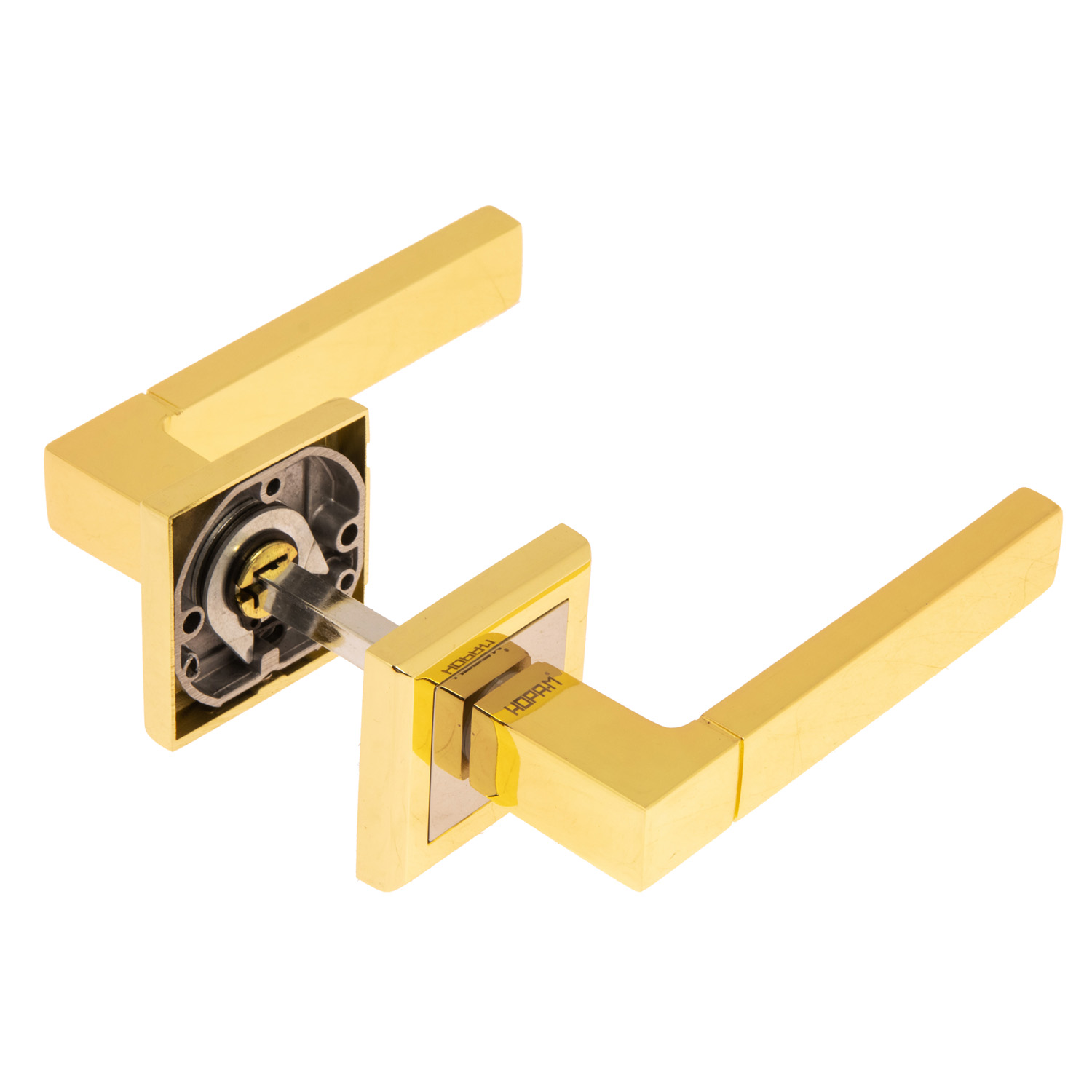4. Сталь. Из нее изготовлены комплектующие – соединительный квадрат, шурупы для установки, стяжные винты и винты для фиксации декоративной накладки на розетку, а также винты для фиксации ручки на квадрат.