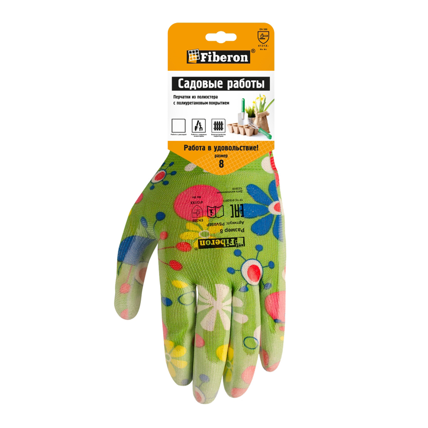Перчатки Садовые полиэстер, полиуретановое покрытие, цвет-микс PR-PU054 "Fiberon" *10/120