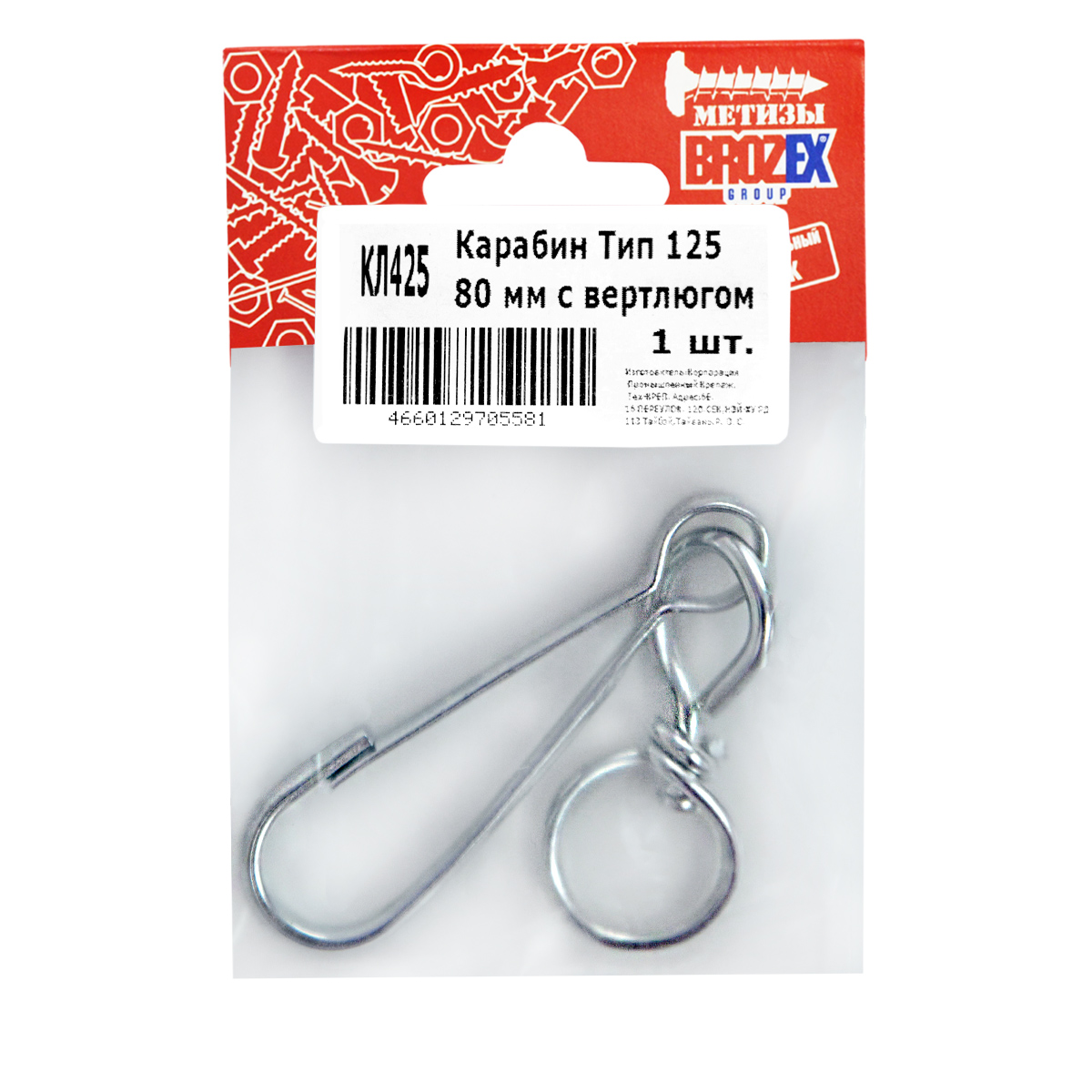 Карабин тип 125 80мм с вертлюгом (1шт) BROZEX *10
