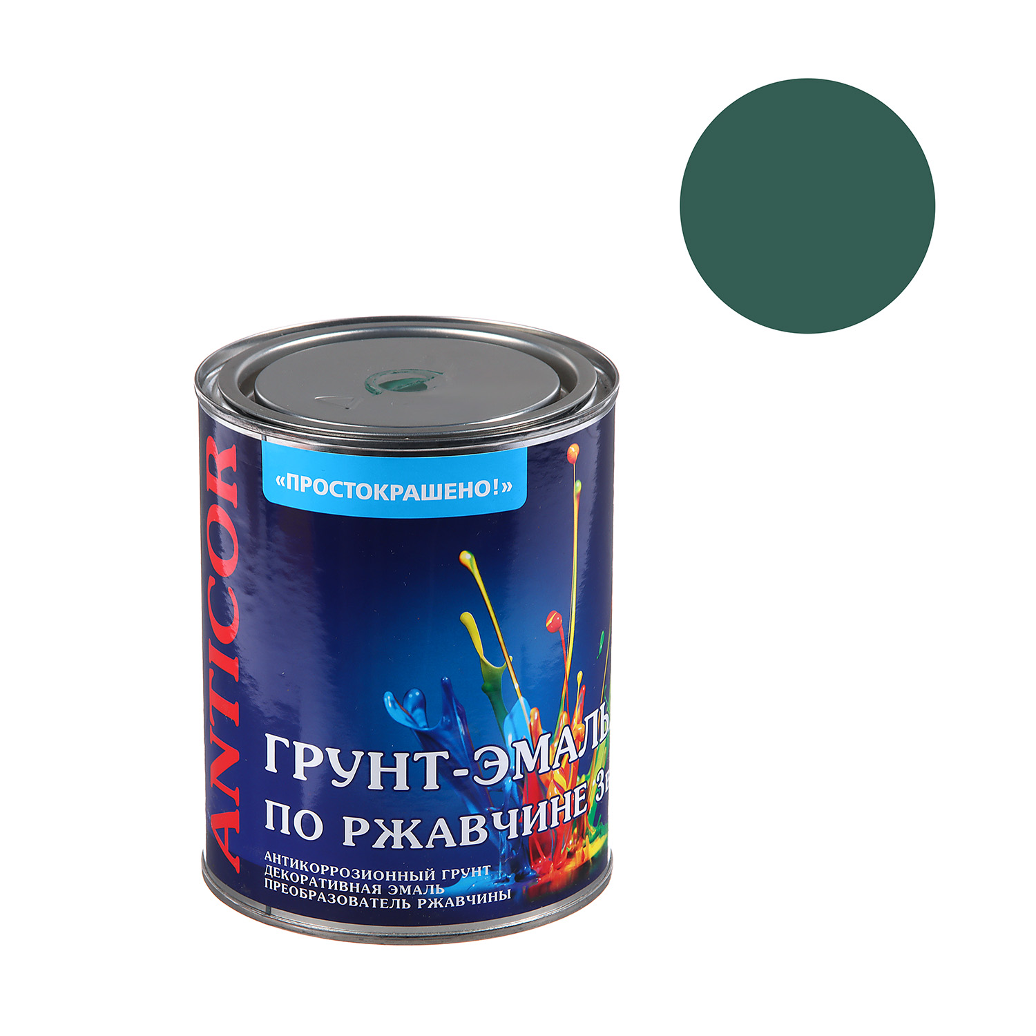 Грунт-эмаль по ржавчине зеленая 0,8 кг Простокрашено *1/14/490