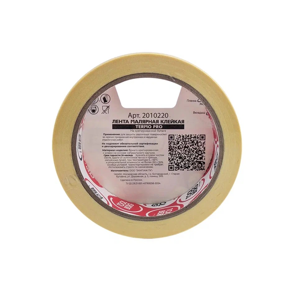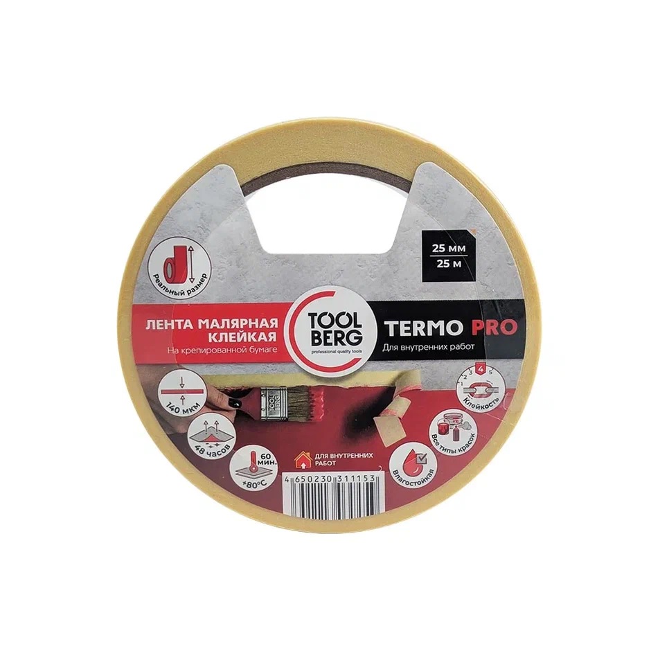 Лента клейкая малярная термостойкая "ТЕРМО PRO" 25мм х 25м арт.2010220 "TOOLBERG" *1/72