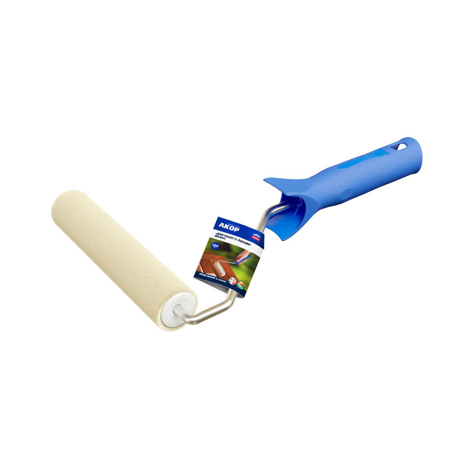 Валик-миди 160мм в сборе д/работ с лаками,d-25мм,ворс5мм,ручка30см,велюр (Акор) *1/40