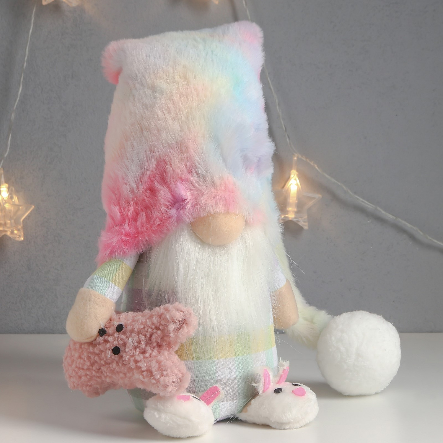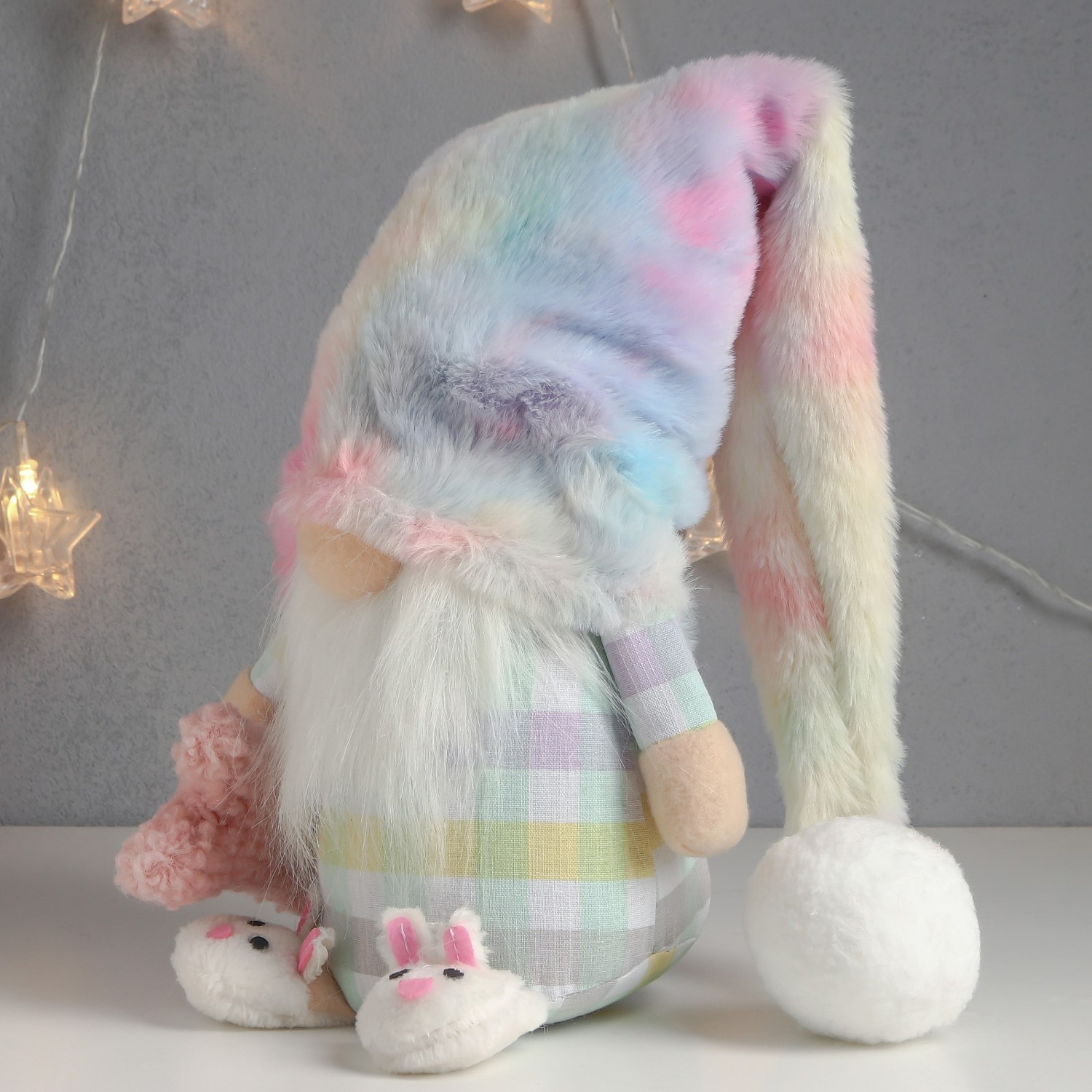 Кукла интерьерная "Гном в пижаме и тапочках, с игрушкой-зайкой" 57х13х13 см 7575258