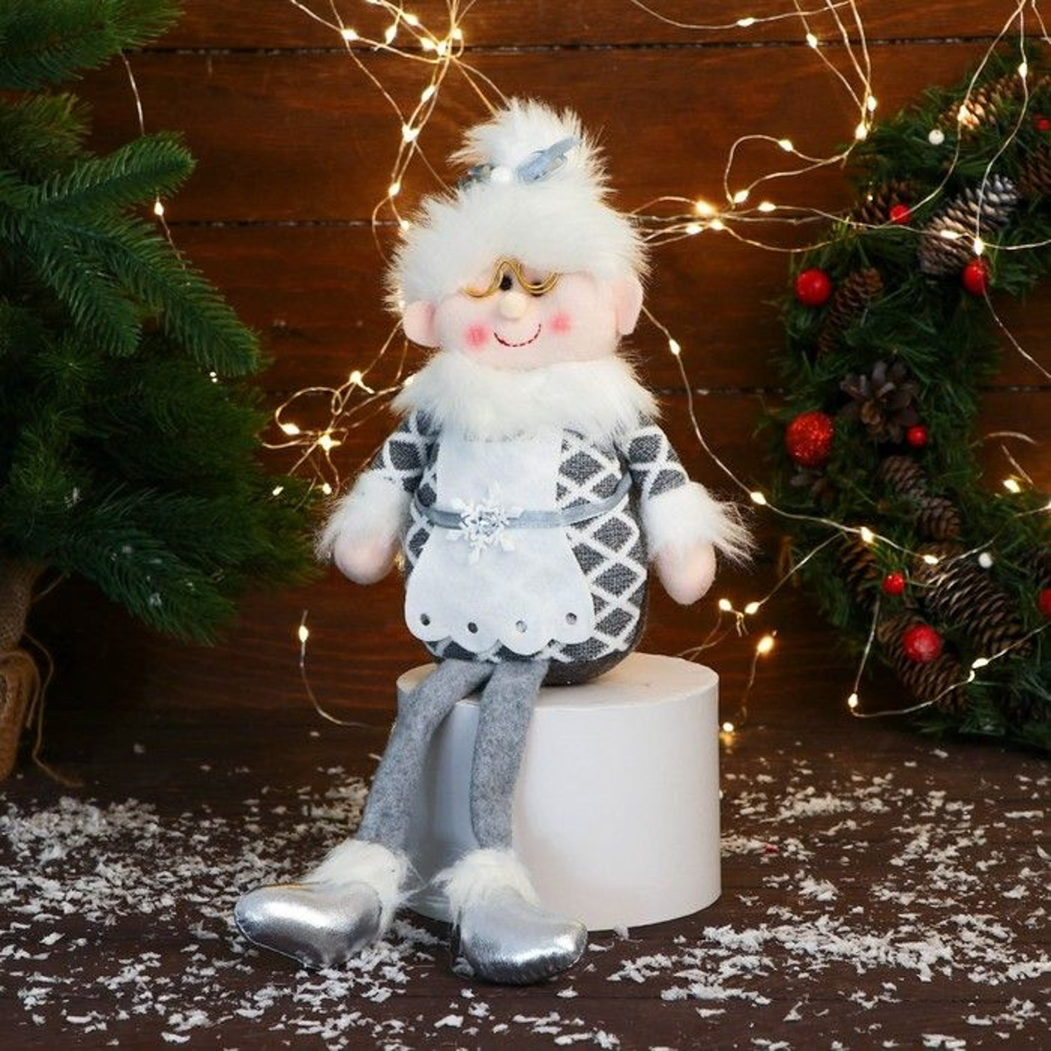 Мягкая игрушка "Бабушка Мороз в костюме с ремешком" 15х39 см, серый 9692552