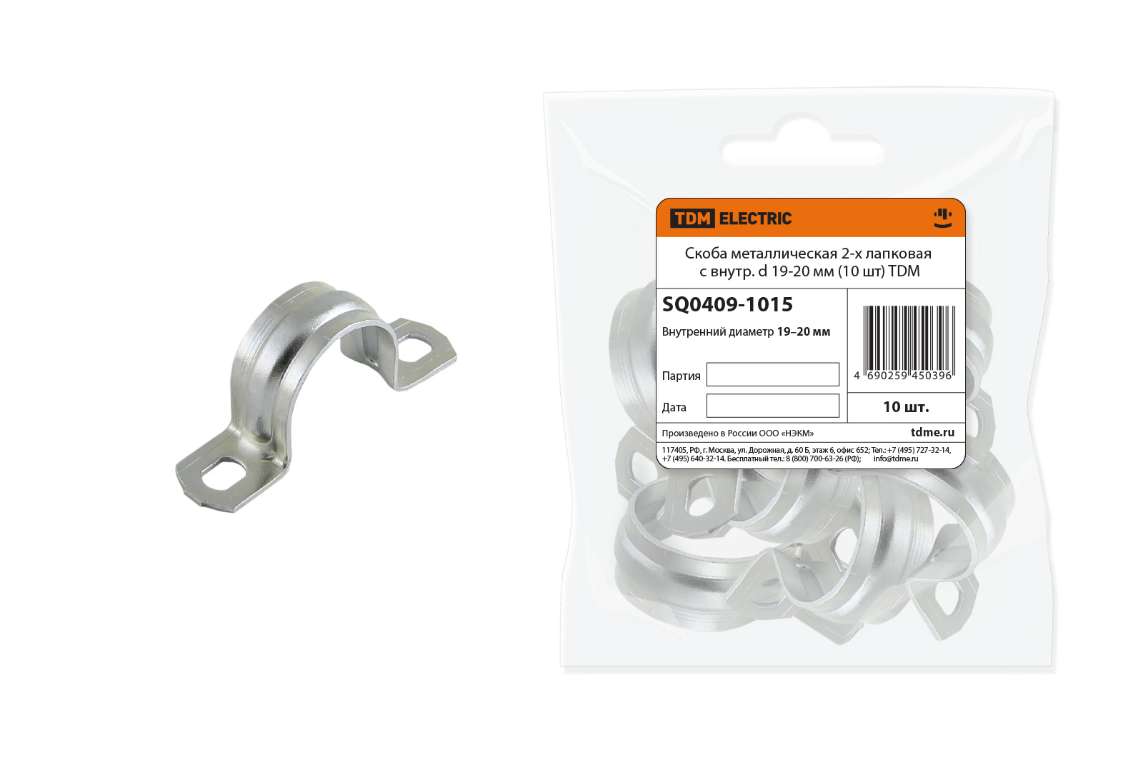 Скоба металлическая 2-х лапковая с d 19-20мм (10шт) TDM SQ0409-1015 *1