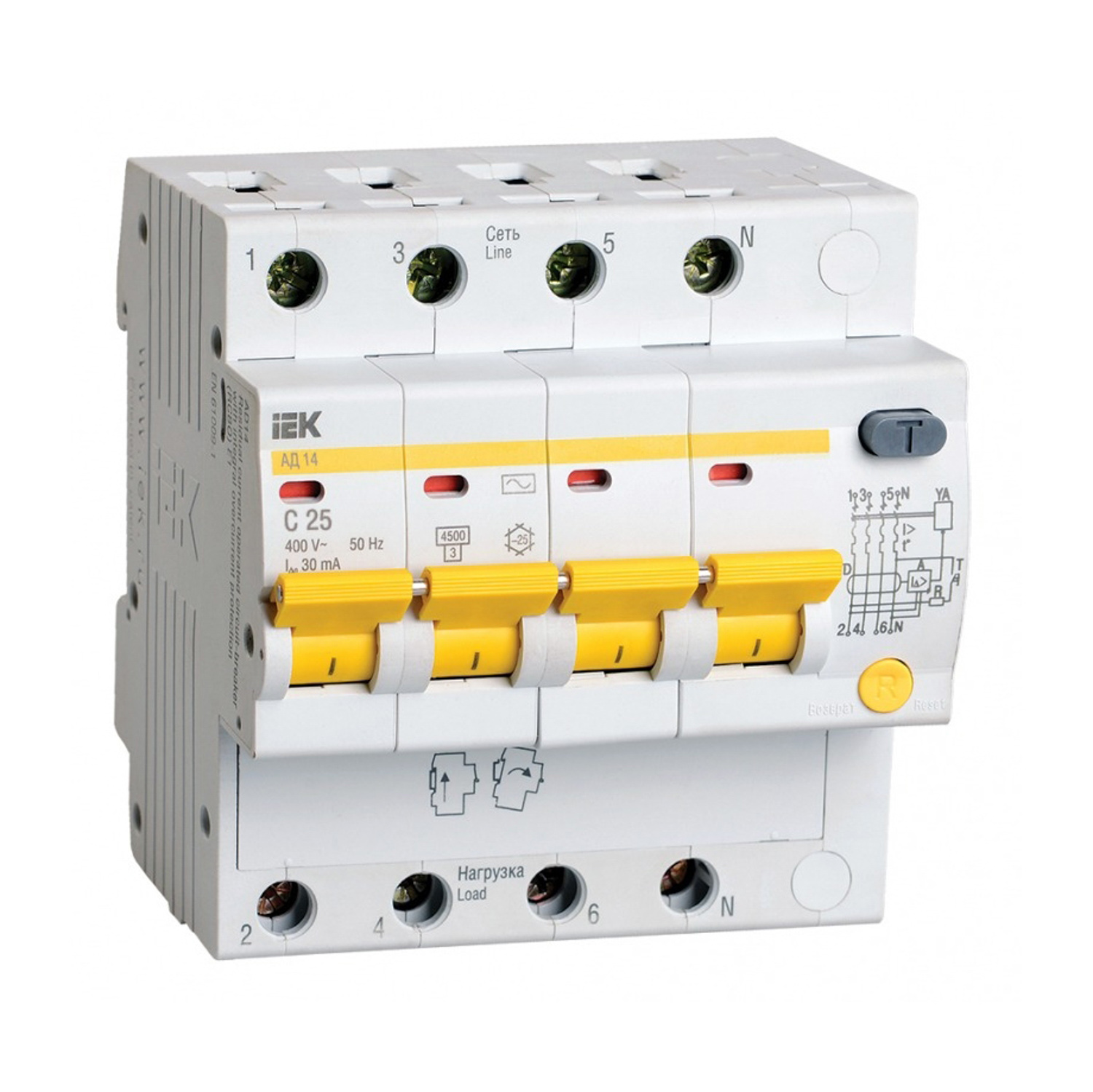 яяяВыключатель диф.тока 4п С 25А 30мА тип АС АД14 ИЭК MAD10-4-025-C-030   *1