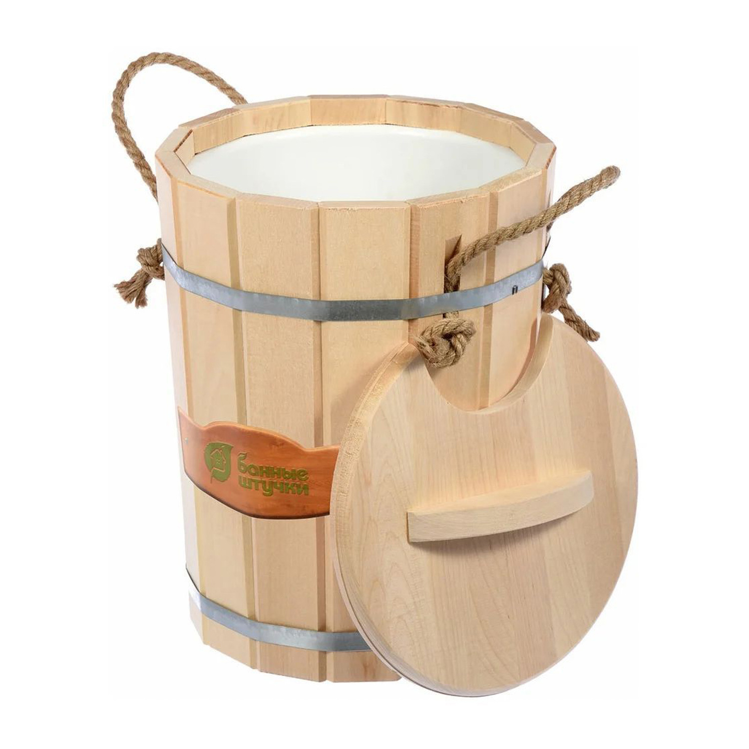 Запарник 9 л. с пластиковой вставкой с крышкой, липа, "Банные штучки" в кор./1