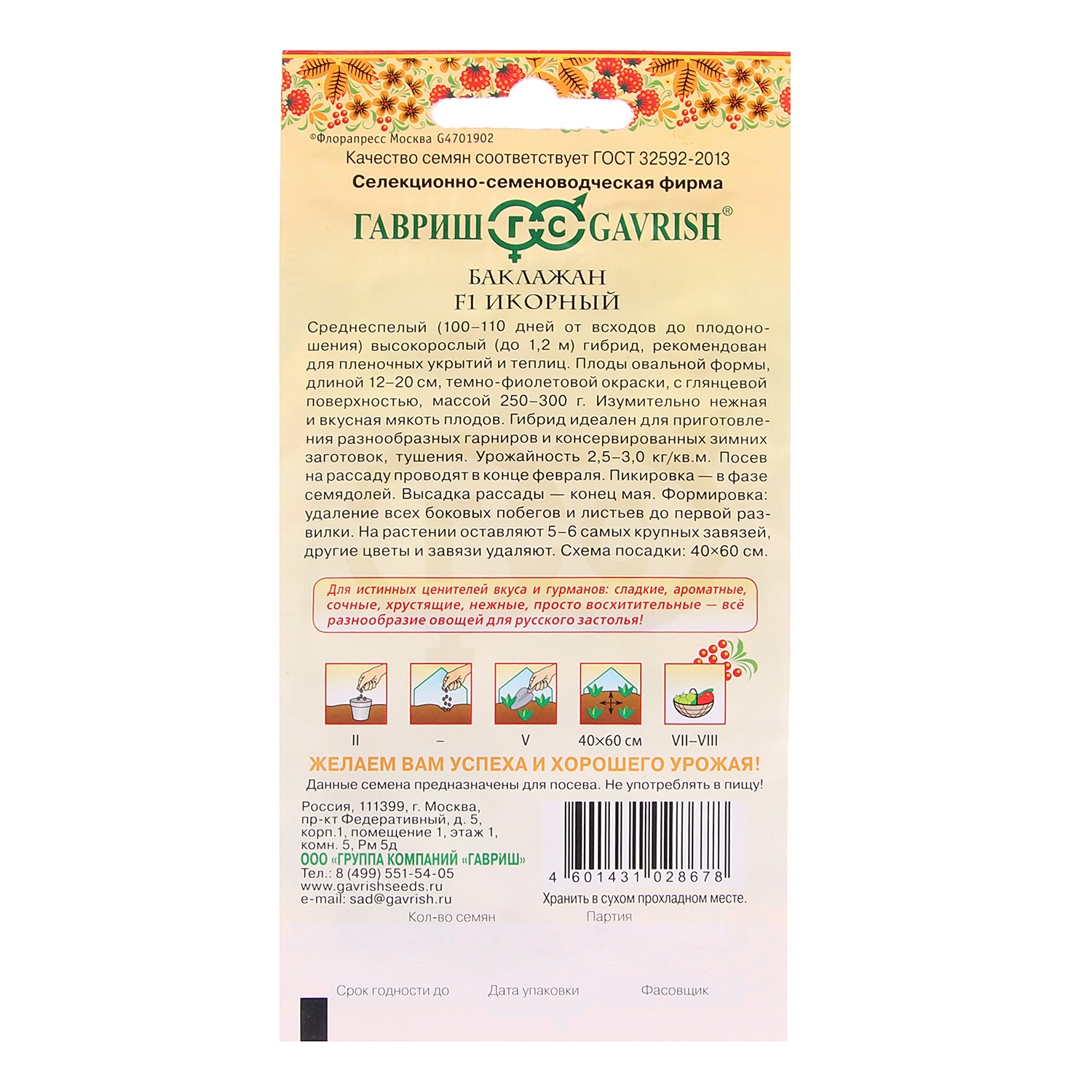 Семена Баклажан Икорный/Русский вкус 0,3гр Гавриш *10/500