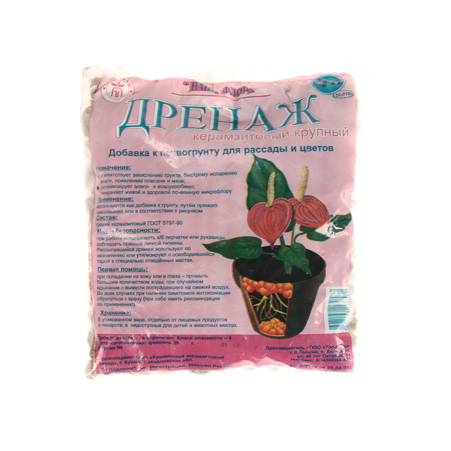 Дренаж керамзитовый - добавка к почвогрунту для рассады и цветов. Препятствует закислению грунта, быстрому испарению влаги, появлению плесени и мхов; оптимизирует влаго- и воздухообмен; сохраняет живой и здоровой почвенную микрофлору.
