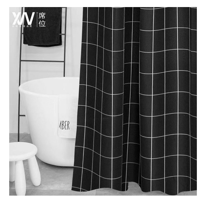 Штора для ванной "Aquadomer" п/эстер 180*180см "Клетка черная" с кольцами XT-061 *1/25