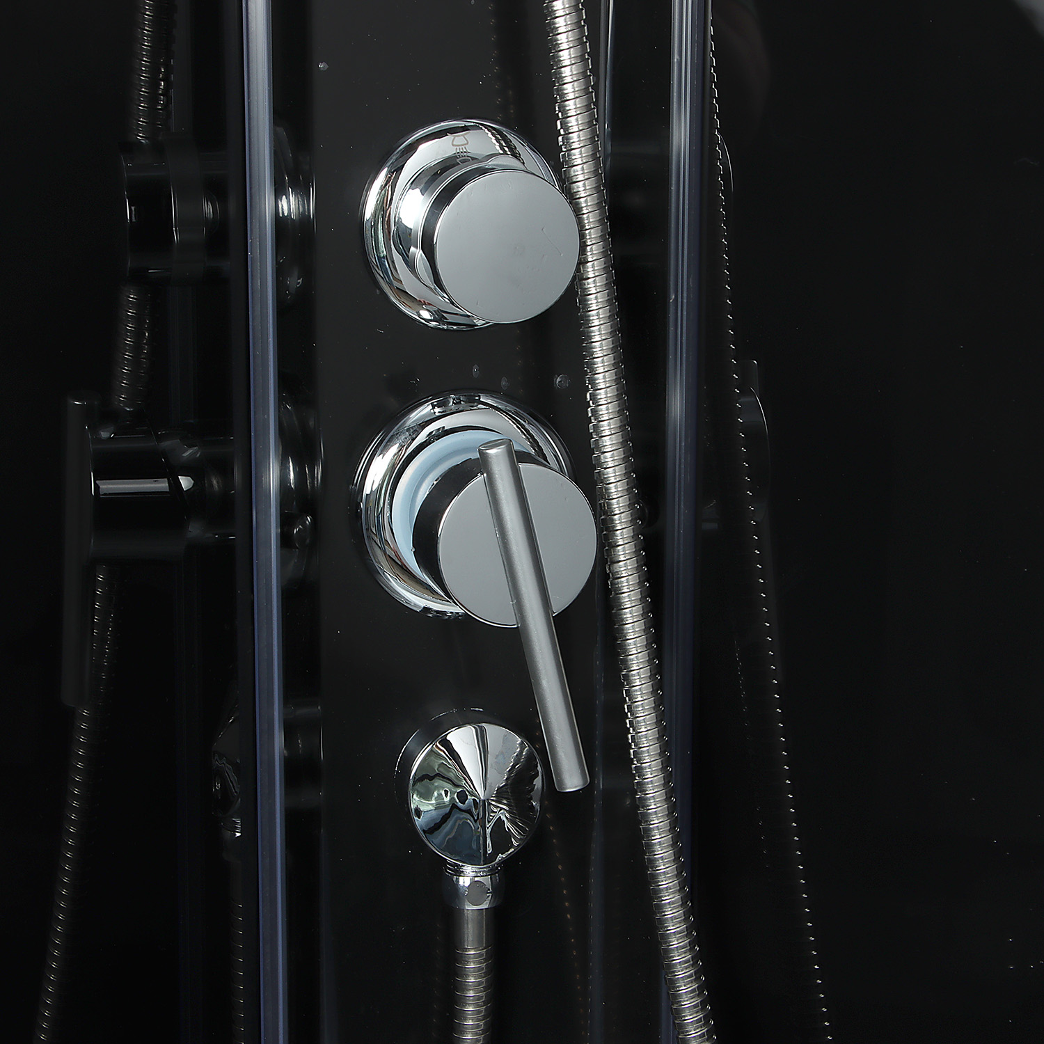 Кабина душевая 90*90*232 Топ B, поддон средний, стекло прозрачное, стенка черная(7уп+сифон D50мм)