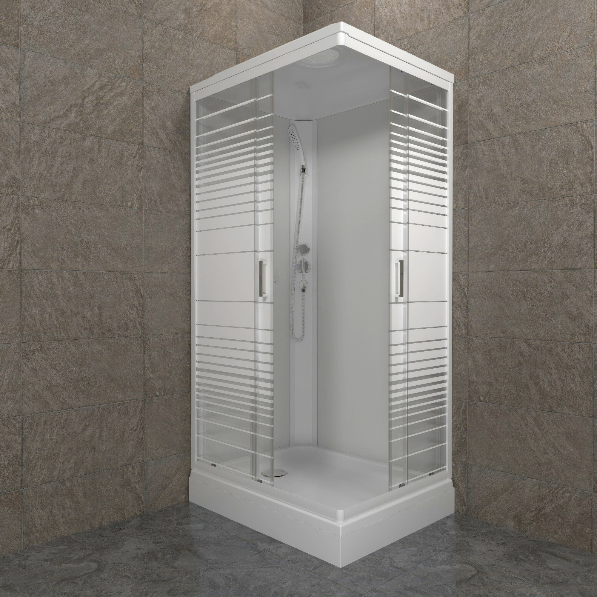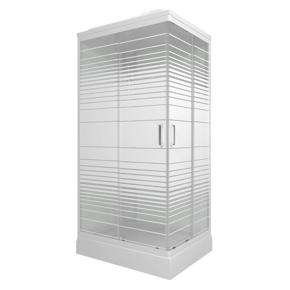 Кабина душевая 120*80*228 Квадро NEW А поддон прямоугольный низкий белый, стекло Полосы, (8уп)