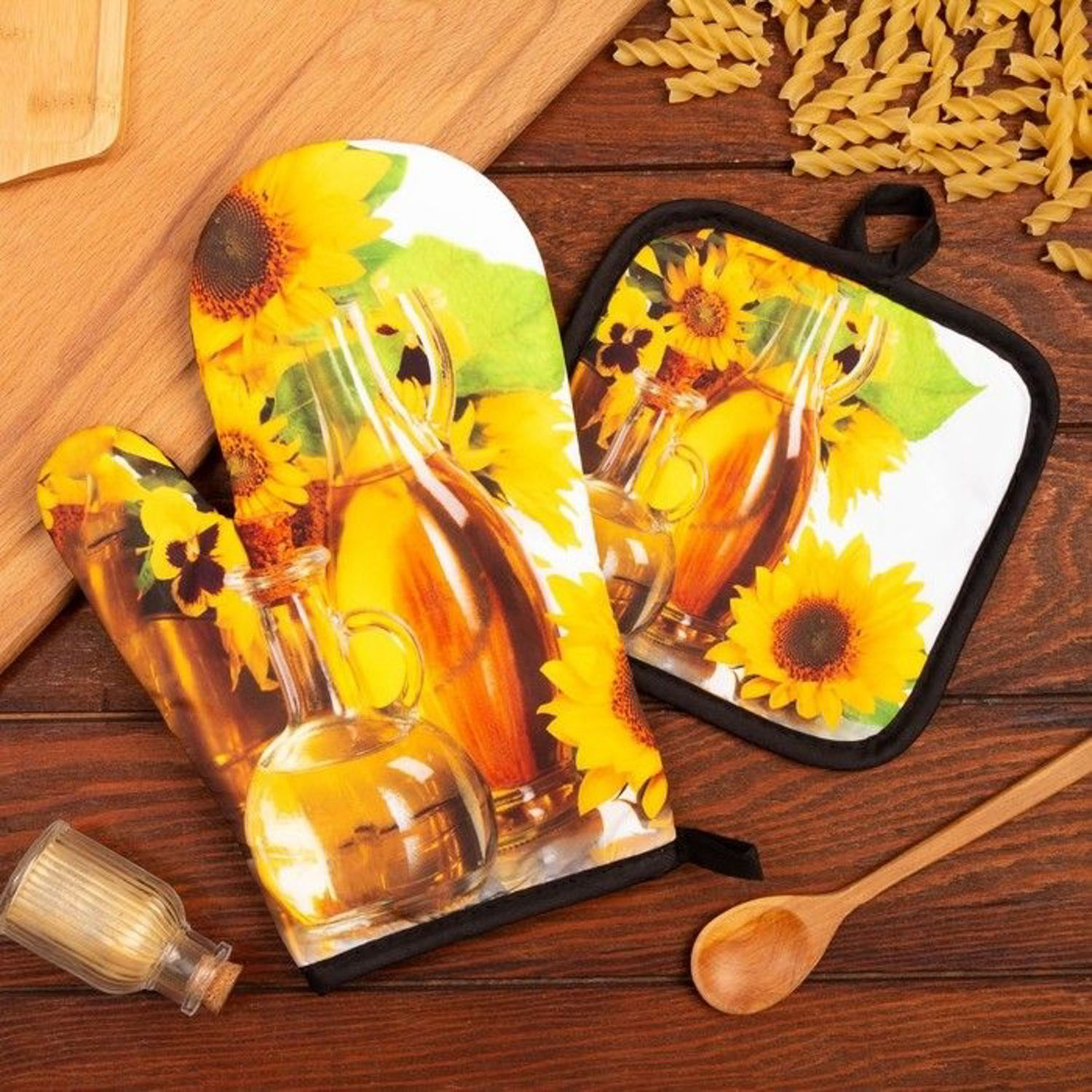 Набор прихваток Подсолнухи варежка-прихватка 24х16см, прихватка 17х17см 100% полиэстер Этель *1