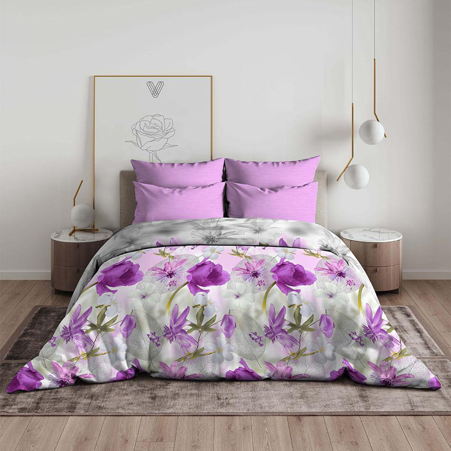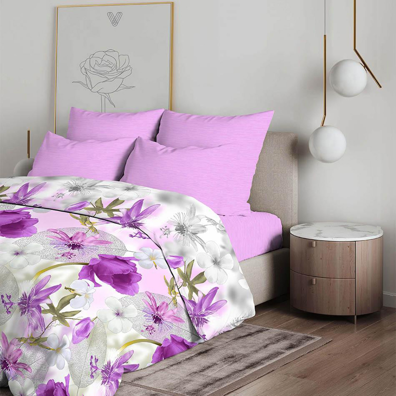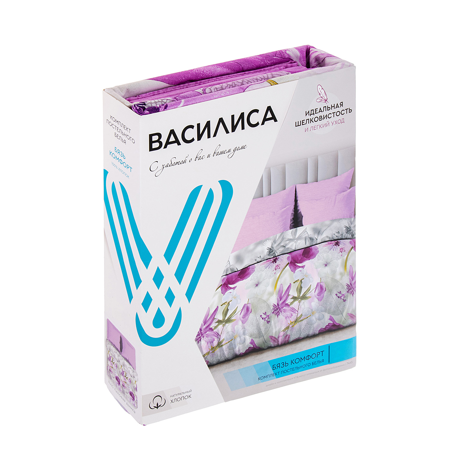 Постельное белье 1,5сп бязь Василиса 7445/1 Лиловая дымка нав70*70,пр150*214 *1/6