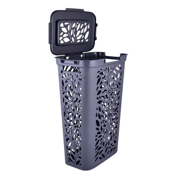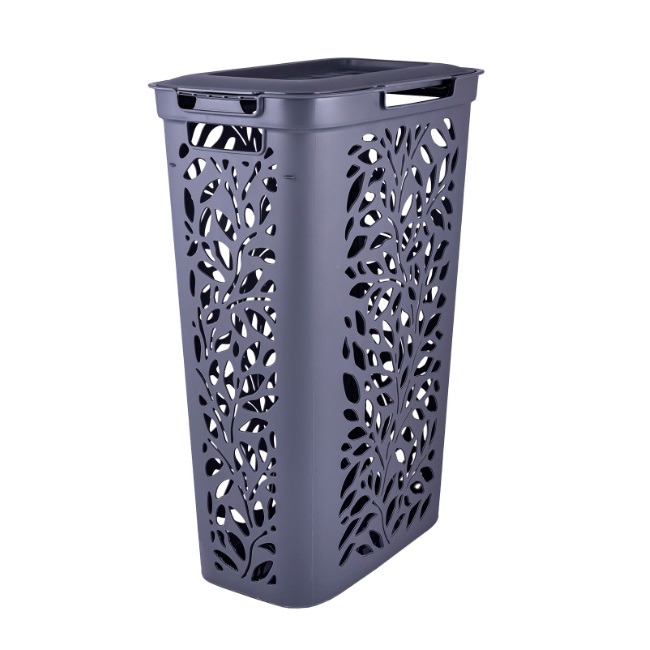 Корзина для белья пластм. 40л "Leaves" 635x275x440мм Серый 49425 ("Плимербыт") *1/4