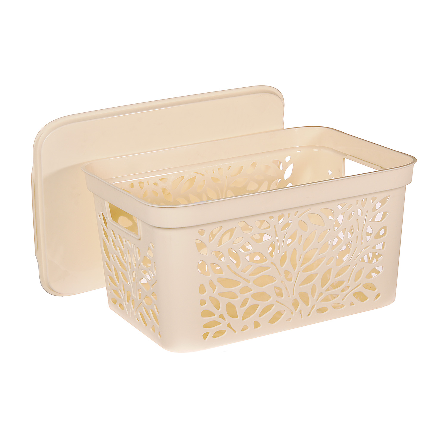 Корзина для хранения пластм. "Leaves" 405х275х207мм с Крышкой 18л Молочны арт.838("Полимербыт")*1/11