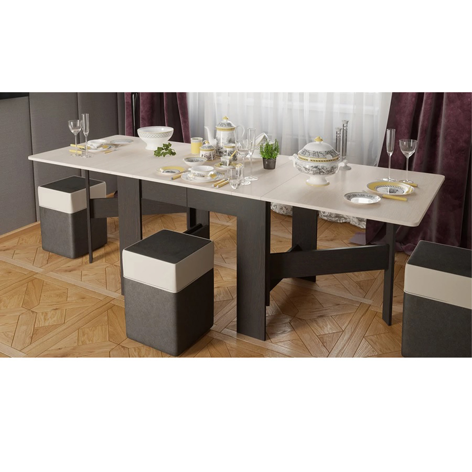 Стол обеденный раскладной 2270мм*800мм Тип 2 Венге Цаво/Дуб Белфорт ТриЯ *1