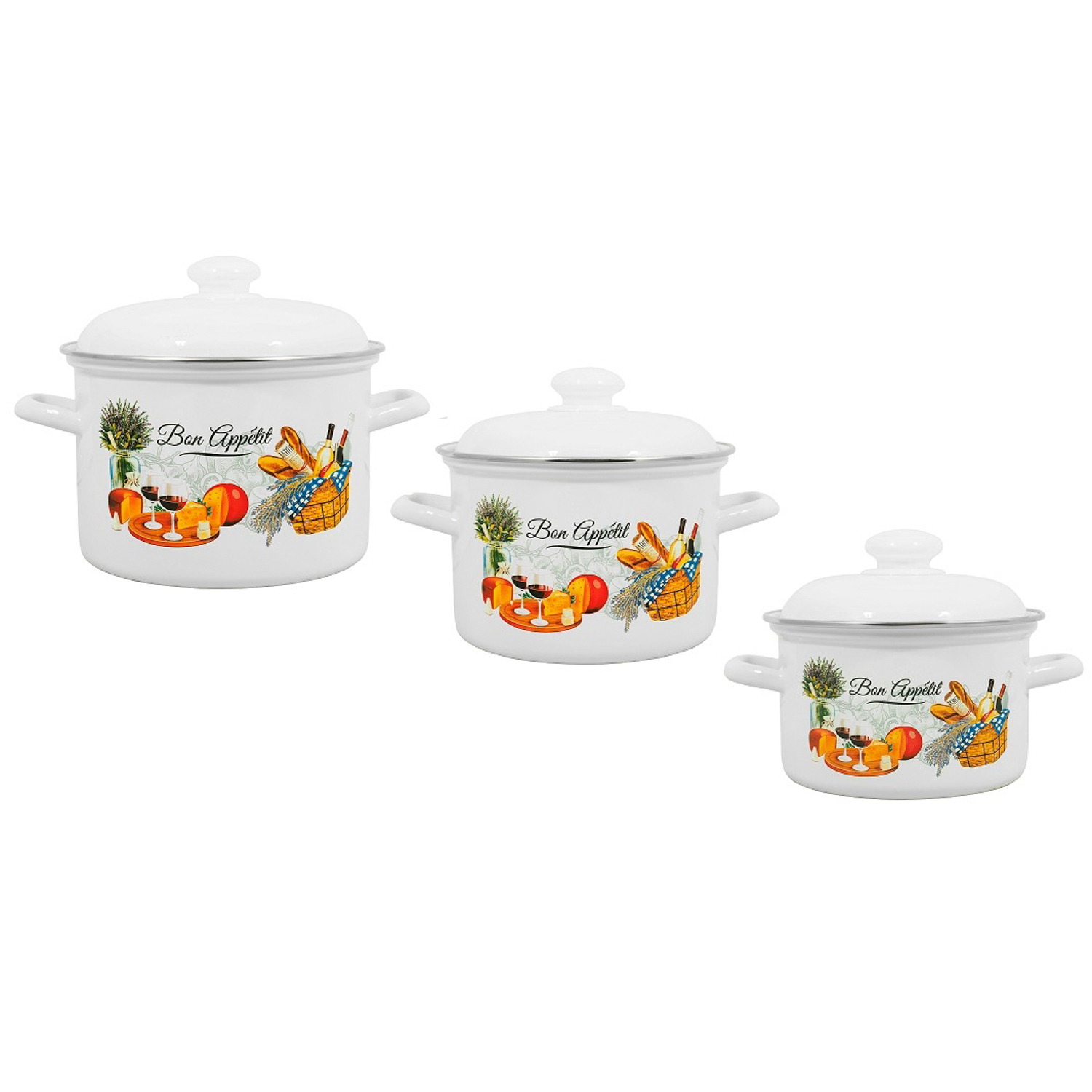 Набор кастрюль эмалированных: 2,0л+3,0л+4,5л рис. "Пикник" С-007АП2/4 "Лысьвенские ЭМАЛИ" *1