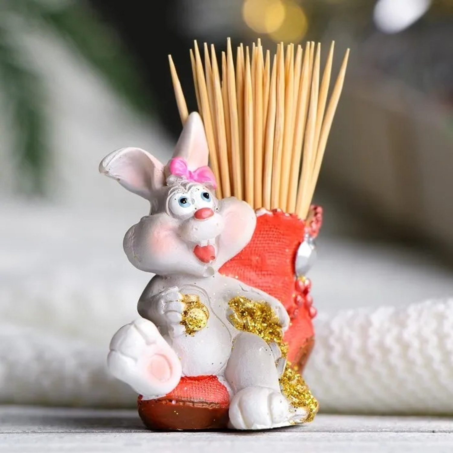 яяяПодставка для зубочисток "Заяц с бабочкой" 6см МИКС 7805855