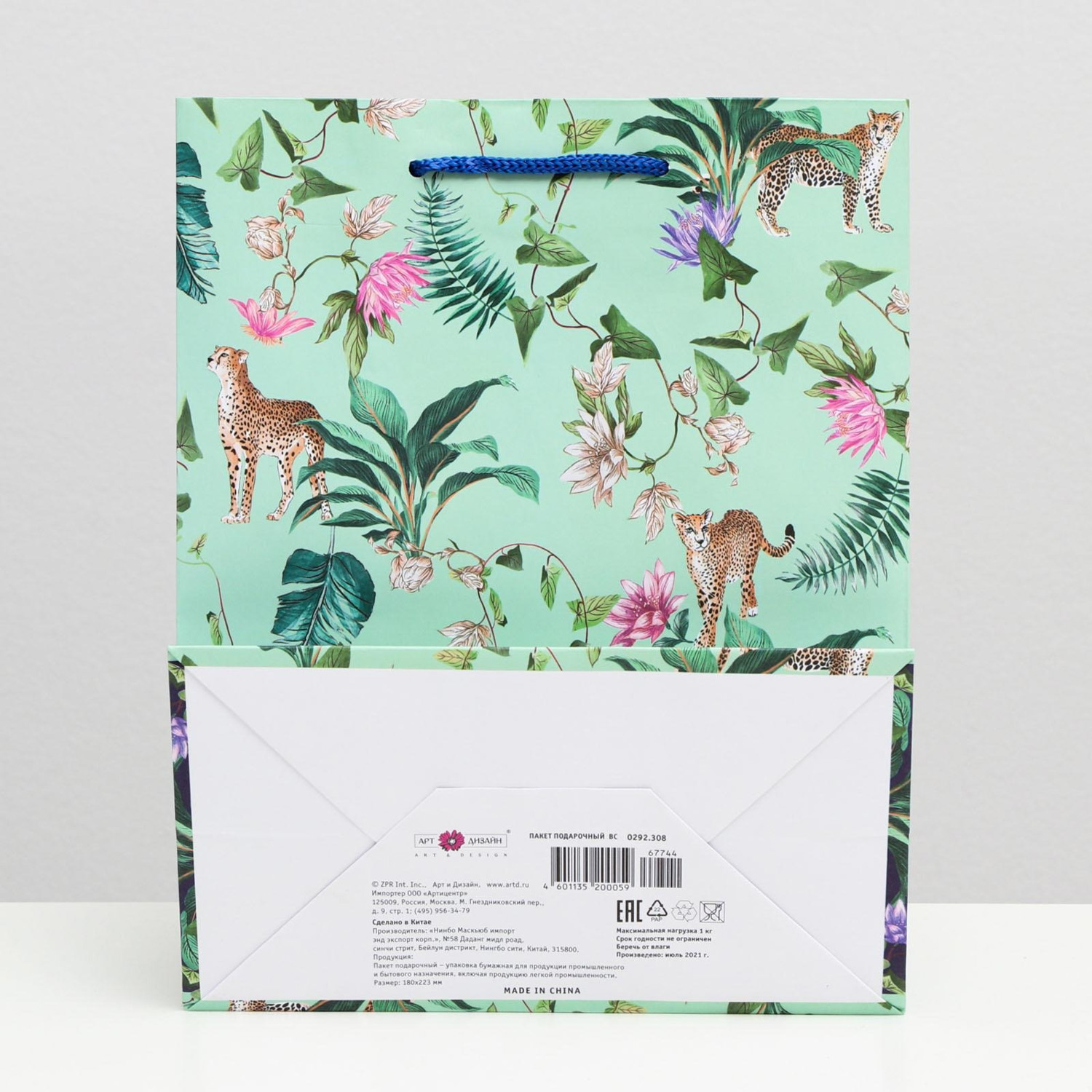 Пакет подарочный "Леопард в цветах", 18 х 22 х 10 см 7437468