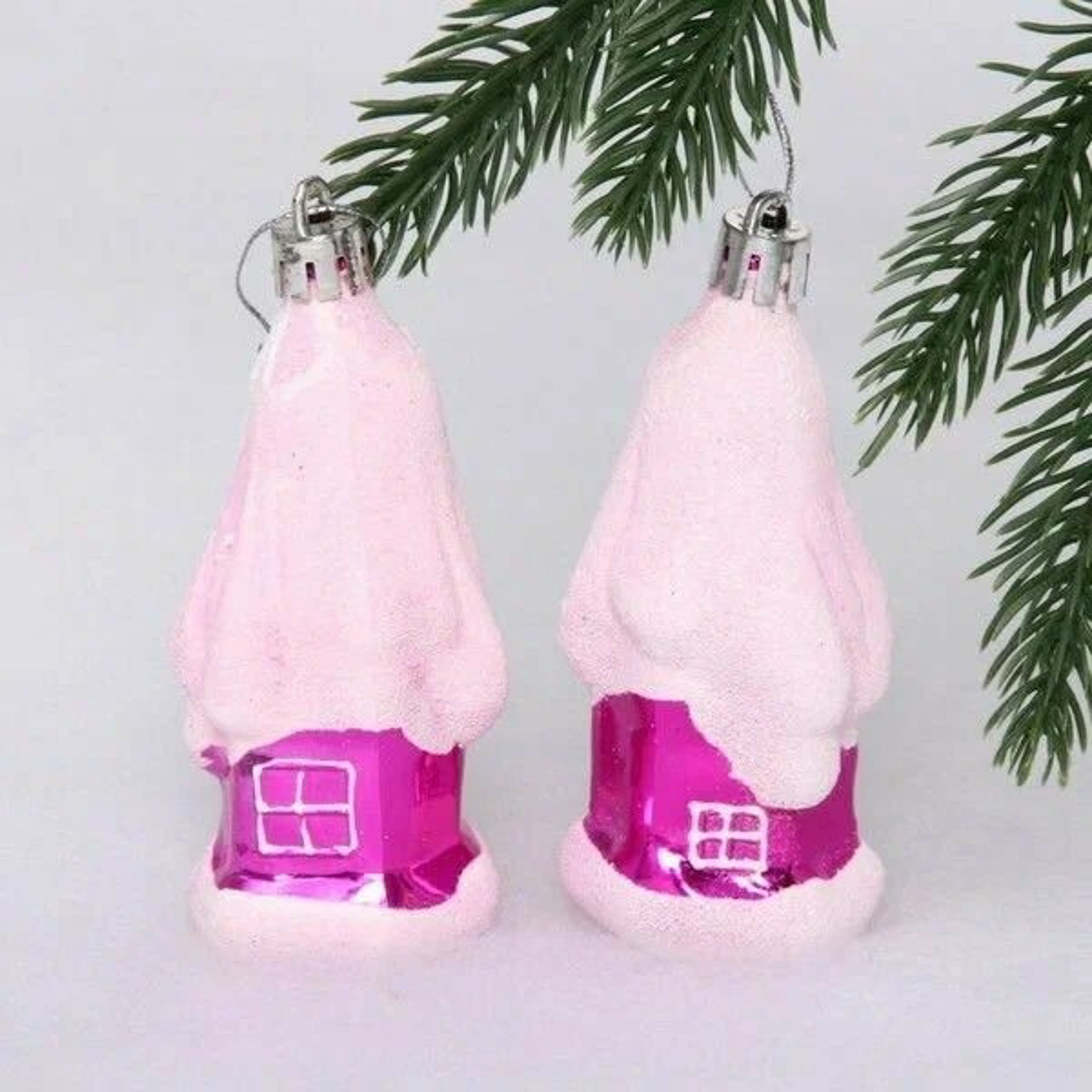 Елочные игрушки "Загадочный домик" 9 см (набор 2 шт), Розовый