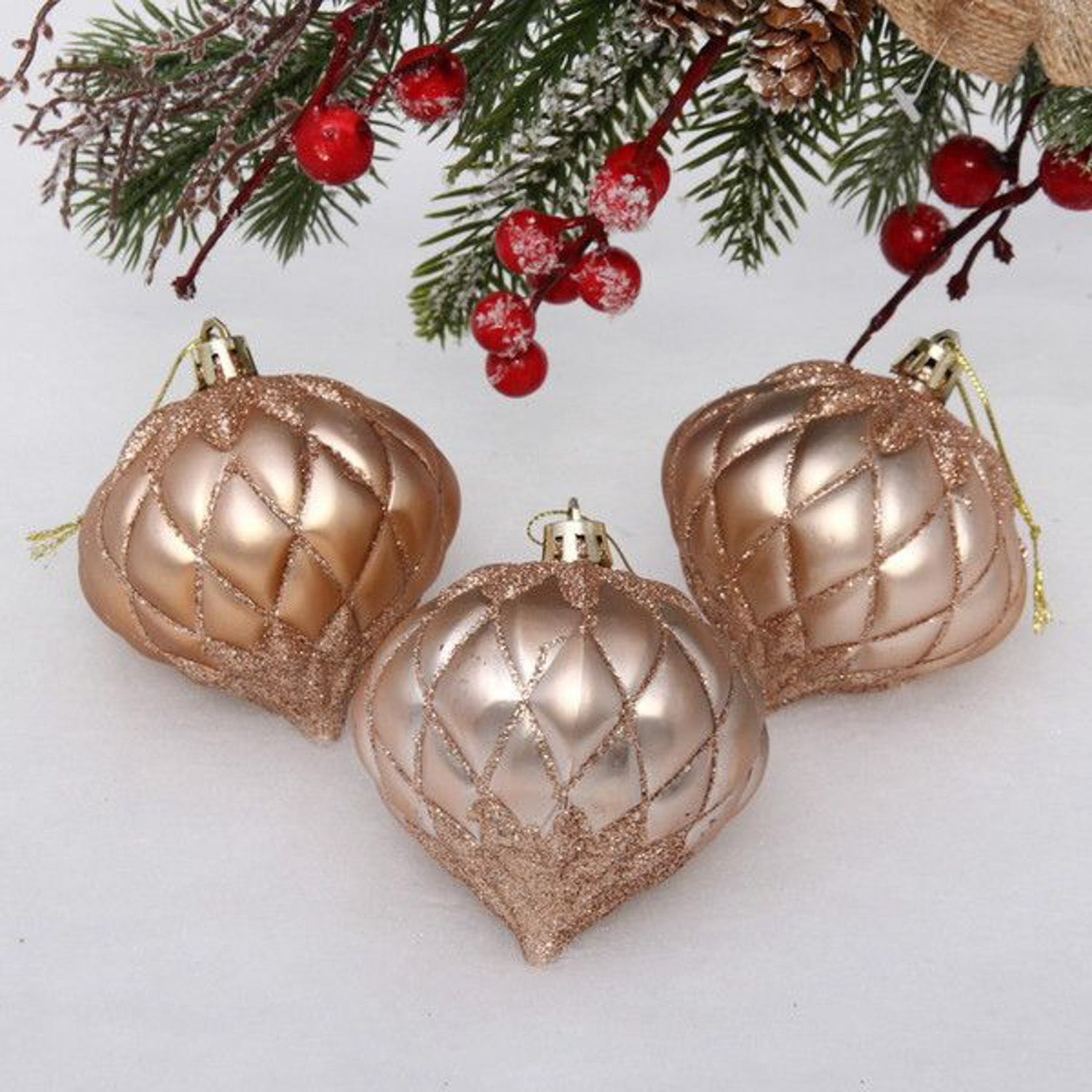 Ёлочные игрушки "Юла" 8 см (набор 3 шт), шампань