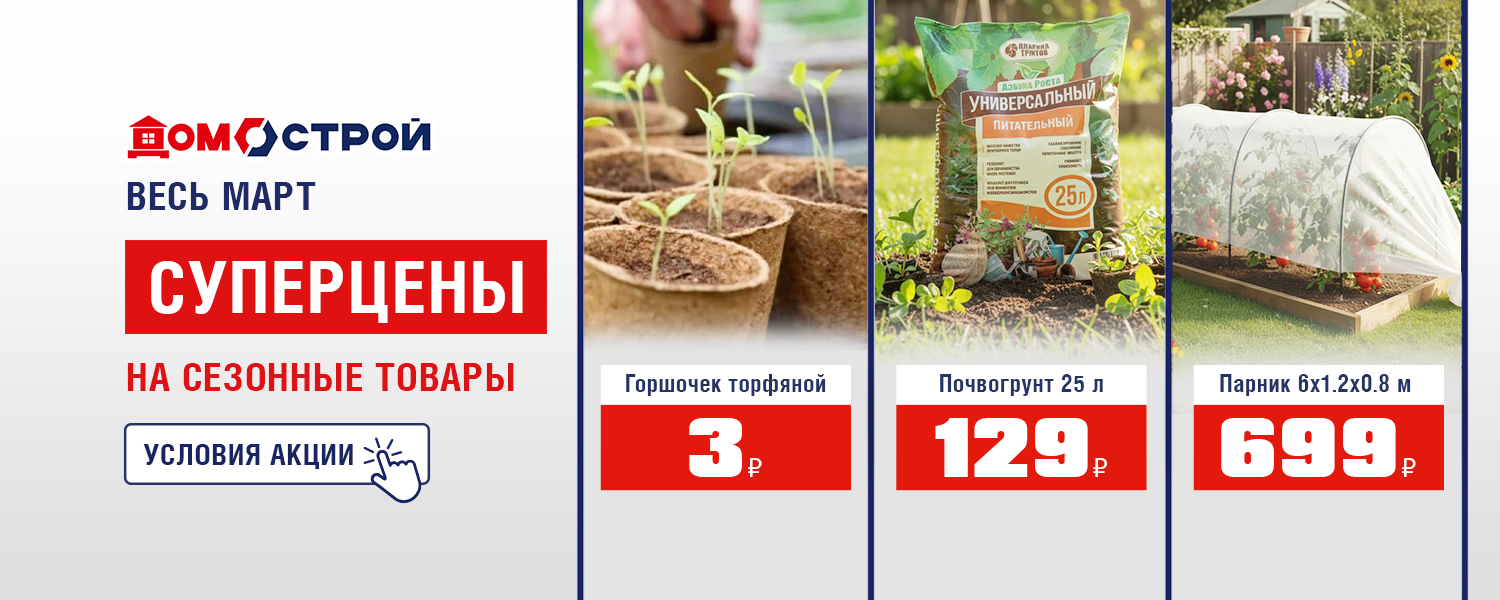 Акция действует 02.03.2026-31.03.2026 г. в интернет-магазине и в розничном магазине ДомоСтрой в г. Нижняя Тура.